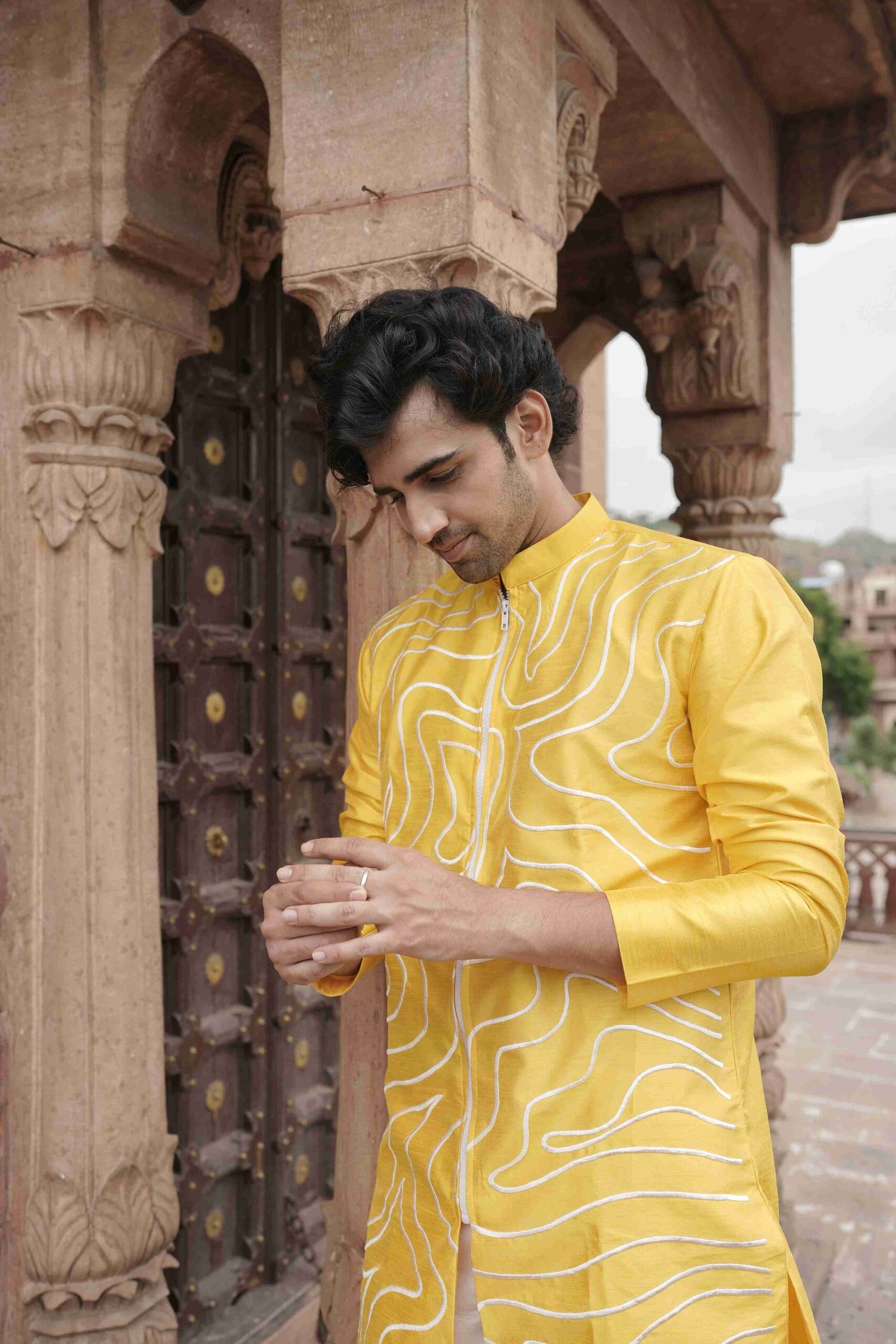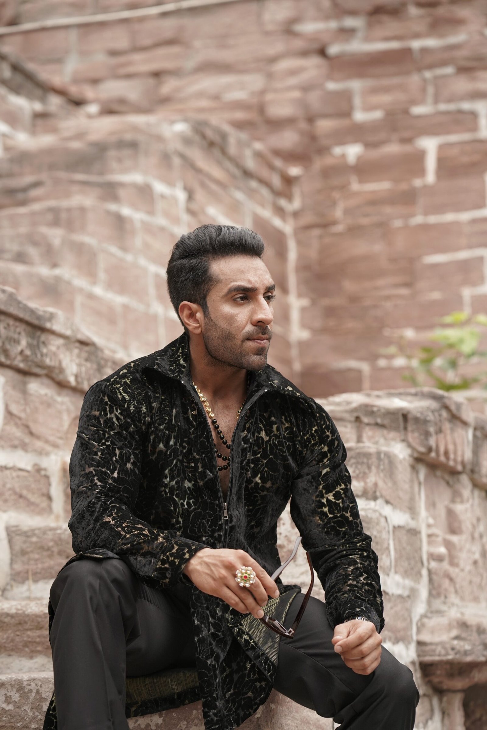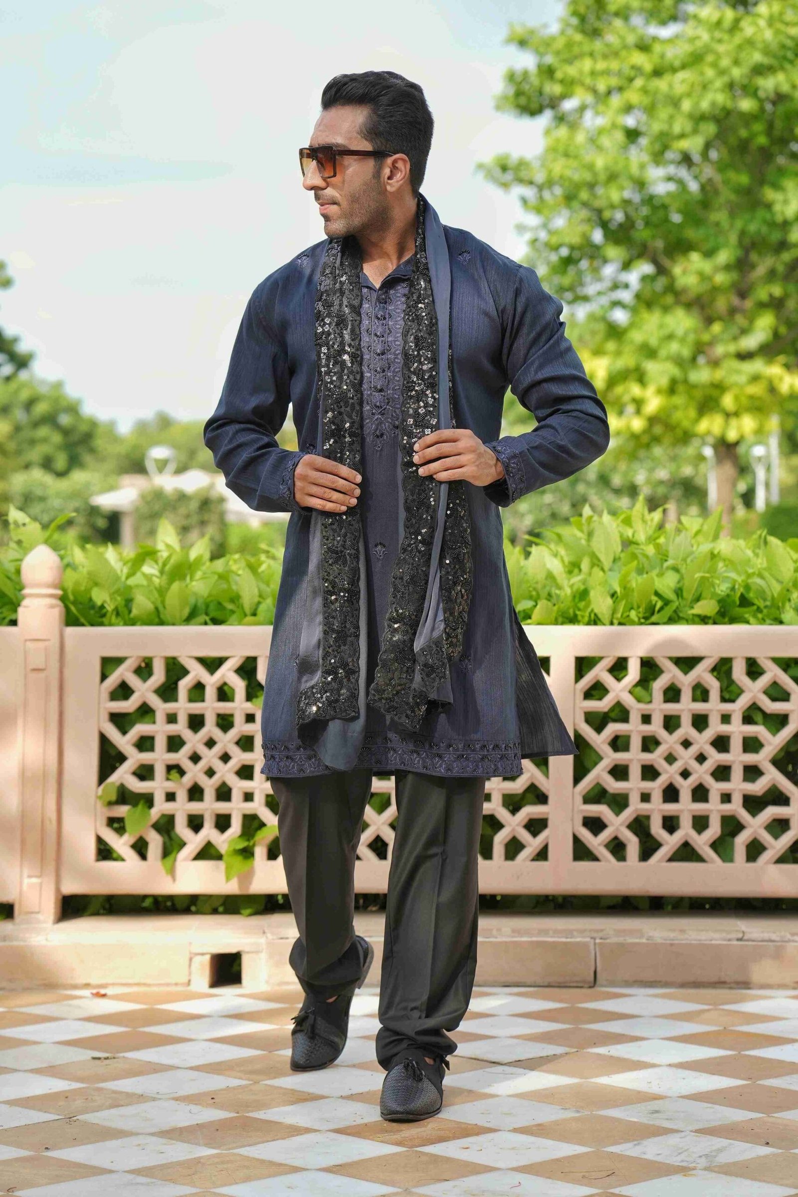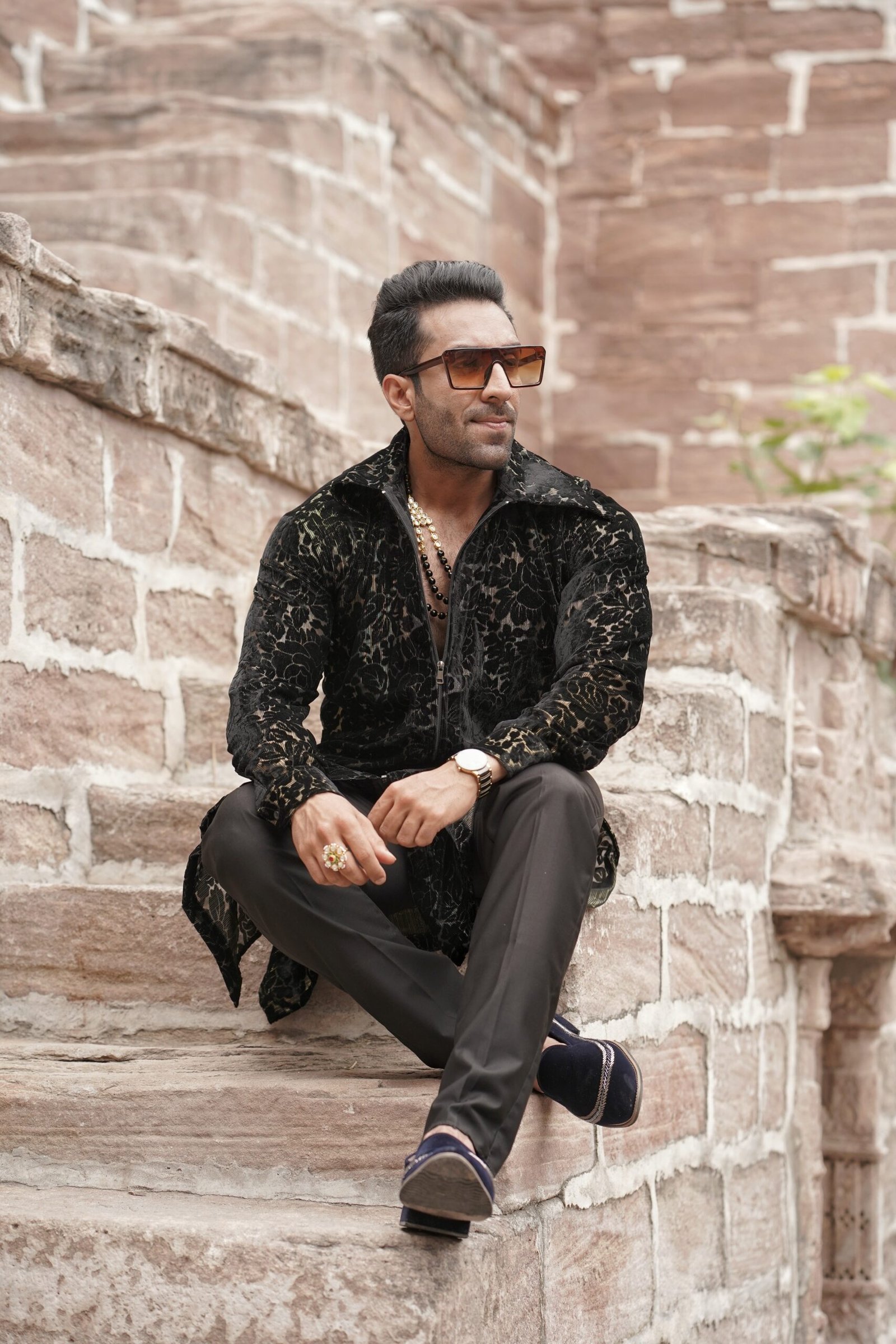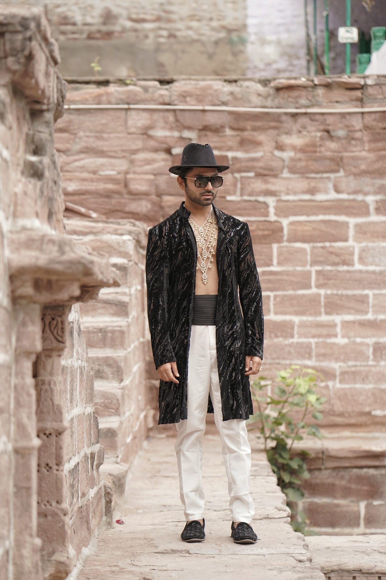 Our collection is unparalleled, featuring classic sherwanis, timeless Jodhpuri suits, sharply tailored tuxedos, and regal accessories. Each ensemble is meticulously crafted not only to fit but to redefine your presence.