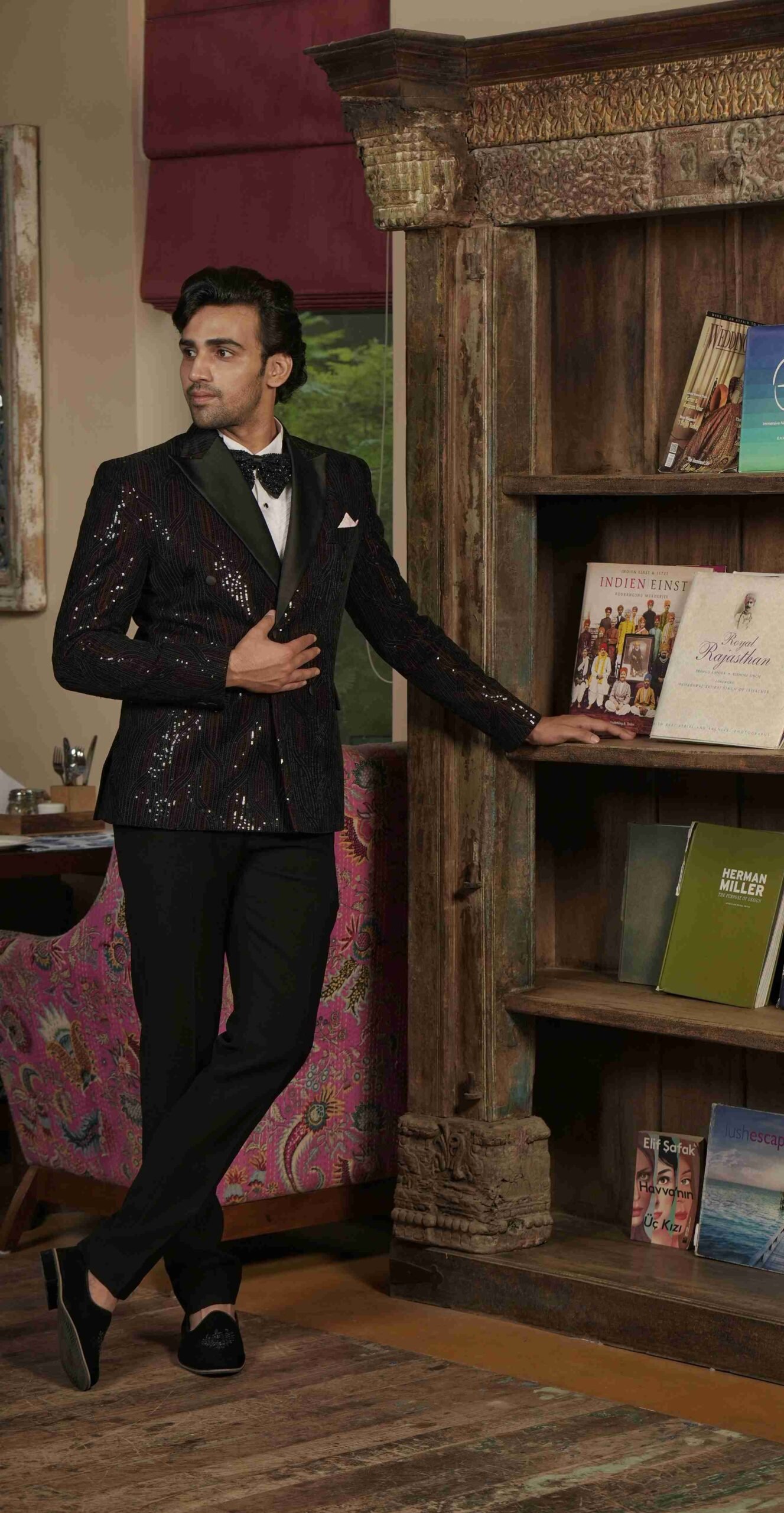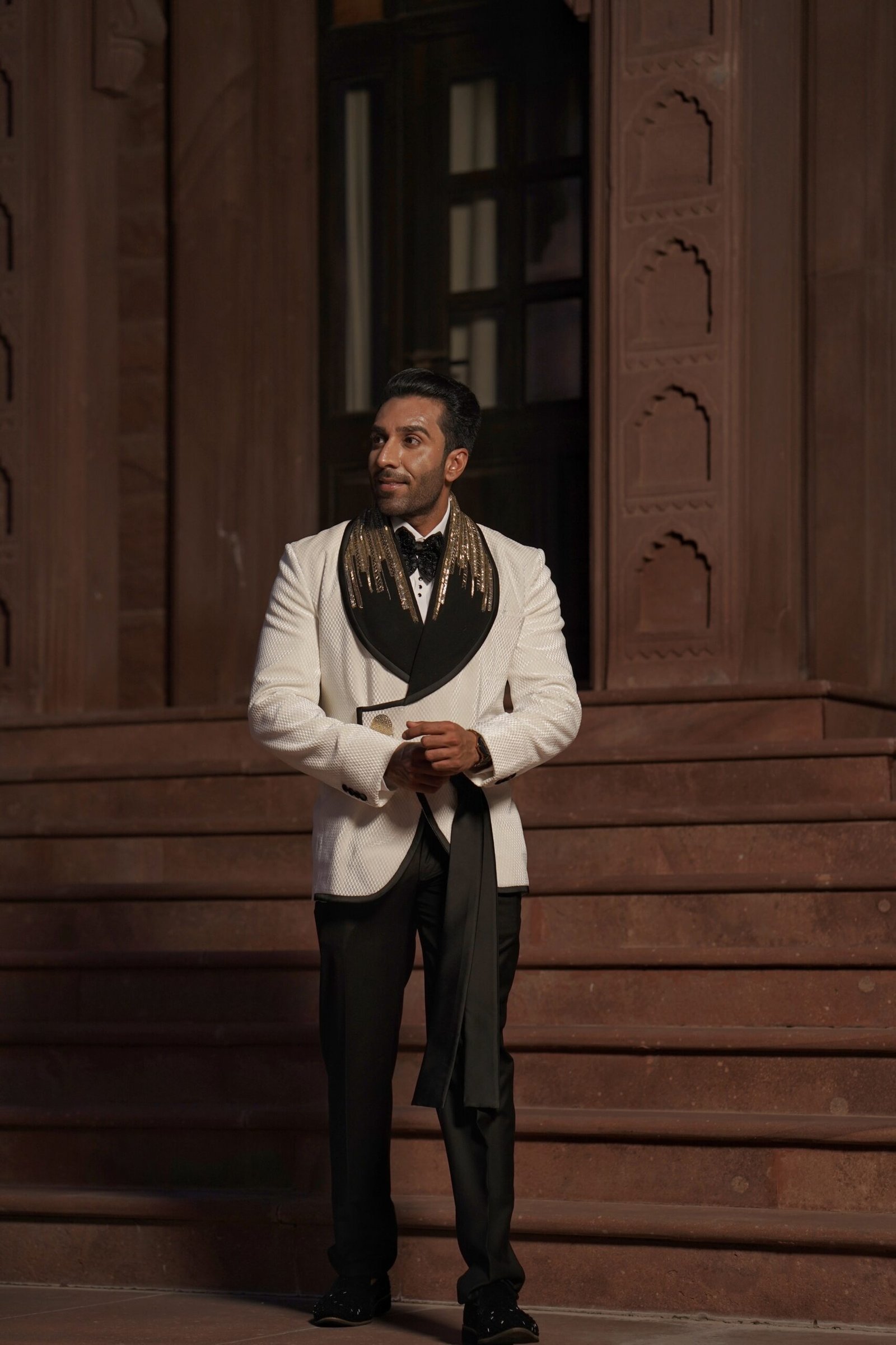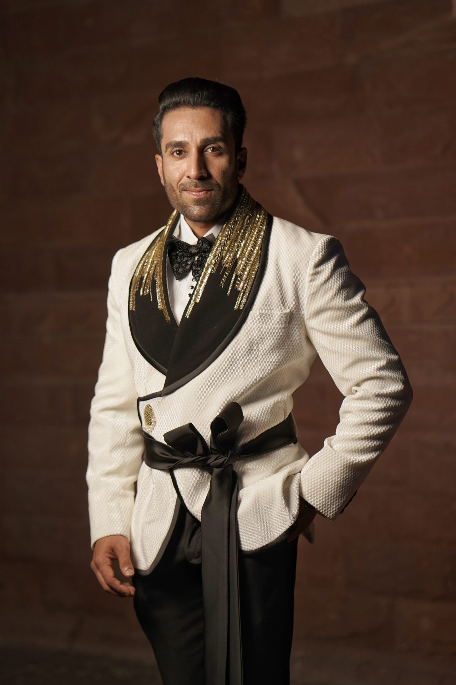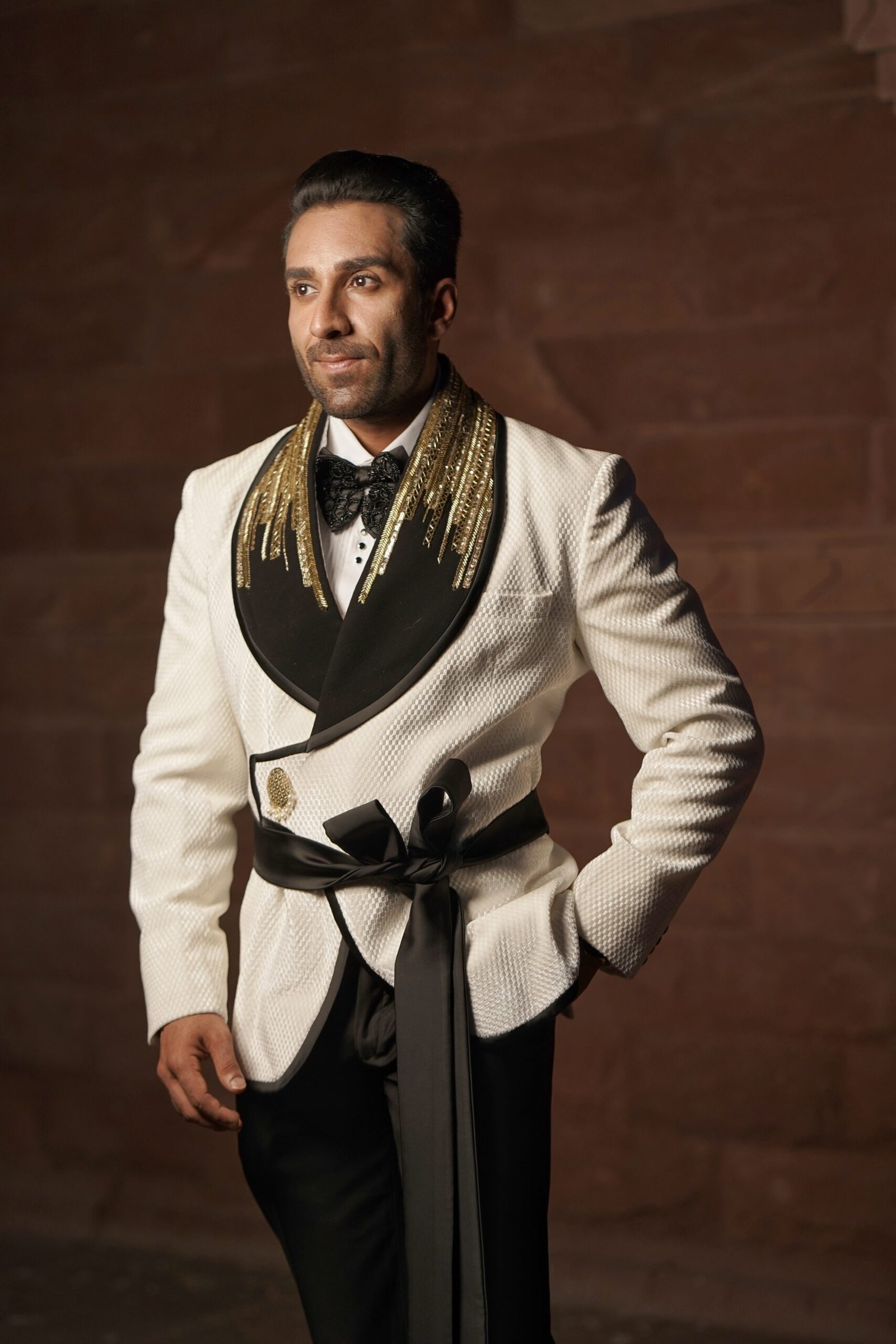 Our collection is unparalleled, featuring classic sherwanis, timeless Jodhpuri suits, sharply tailored tuxedos, and regal accessories. Each ensemble is meticulously crafted not only to fit but to redefine your presence.